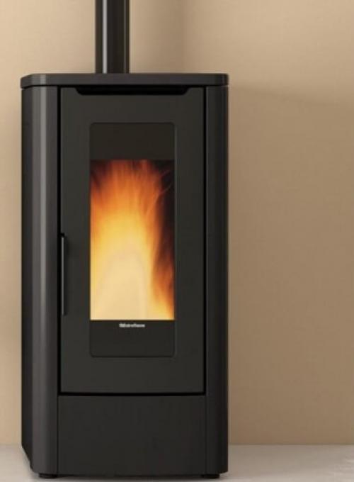 De La Nordica Teorema is een uiterst performante pelletkachel van 10kw, voldoende om een zeer grote ruimte van 287 m3 te verwarmen.