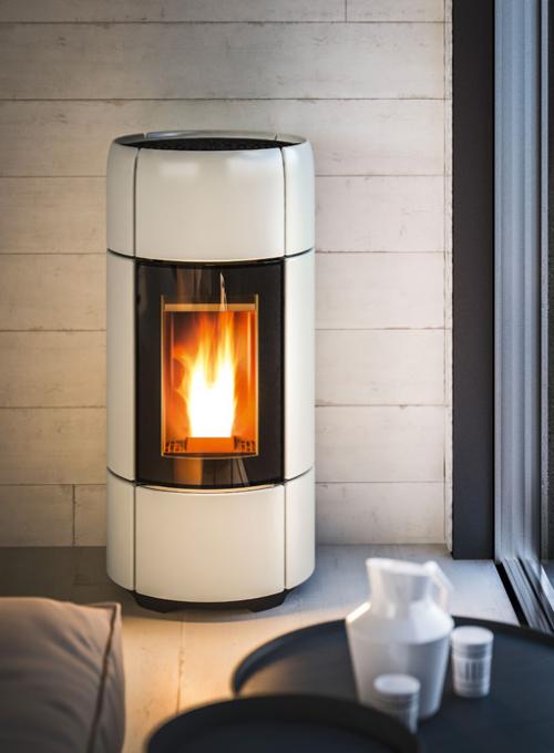 De Curve is een ronde pelletkachel met stijlvolle lijnen in een keramiekmantel.